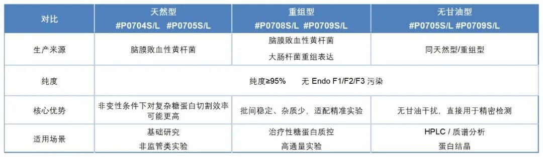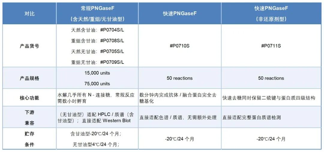 糖生物学是研究糖类的结构、功能及生物学特性的一门科学,糖类也可称为多糖/聚糖,在自然界中广泛分布。在生物学中糖生物学虽然是一门较小的领域,但是发展迅速,与生物医学、生物技术和基础研究都密切相关。蛋白质组学是对生物系统中蛋白质的系统研究,它拓展了我们对蛋白质表达、修饰、相互作用和功能的认知。但在真核细胞中,大多数蛋白质都经过了翻译后修饰。常见的翻译后修饰(依赖于多糖)对细胞存活至关重要,见图 1。糖基化决定了糖复合物的粘附特性,细胞与细胞和细胞与病原体的接触主要是通过糖与蛋白相互作用完成的,这体现了糖生物学重要性。糖组学是研究多糖在生物系统中表达的一门学科,通过有效的酶学和分析技术将多糖结构与功能关联起来。 图1:N-和 O-糖基化 一、PNGase F PNGase F(肽 - N - 糖苷酶 F)是一种酰胺酶,可特异性切割糖蛋白 / 糖肽中最内侧 N - 乙酰葡糖胺(GlcNAc)与天冬酰胺之间的糖苷键,高效去除高甘露糖型、杂合型及复杂型 N - 连接糖,但无法切割核心含 α1-3 岩藻糖修饰的 N - 糖(常见于植物、昆虫细胞表达蛋白)。 图2:PNGase F 作用位点 一句话讲清PNGase F如何“切糖: PNGase F 通过特异性切割糖蛋白最内侧 N -乙酰葡糖胺与天冬酰胺之间的糖苷键,从而将 N-连接糖链从蛋白质上完整切除。 二、PNGase F 家族核心产品技术参数对比 NEB 公司提供的 PNGase F 系列产品已形成多维度细分体系,按功能效率可分为常规 PNGase F、快速 PNGase F、快速 PNGase F(非还原剂型) 三大类,按生产与缓冲液特性又可细分为天然型、重组型、无甘油型,覆盖从基础研究到治疗性糖蛋白质控的全场景需求。 所有 PNGase F 产品均经过严格质控,包括纯度检测(SDS-PAGE 验证)、杂酶污染检测(荧光标记寡糖法)及批间差控制,确保酶活稳定与实验重复性。其中,重组型产品通过基因工程表达,纯度高(≥95%)且批间差更小(≤5%);无甘油型产品适配 HPLC、质谱等精密检测,避免甘油对分析结果的干扰;快速型产品则大幅缩短反应时间,满足高通量与过程控制需求。 2.1三大功能型 PNGase F 产品对比 2.2常规 PNGase F 亚型(天然 / 重组 / 无甘油型)对比 2.3产品组分对比 2.4工作流程对比 拥有快速 PNGase F,您可以在几分钟内完成去糖基化反应 快速 PNGase F 让抗体分析更加简单: 一步建立反应,加速去糖基化进程 无偏嗜性地去除所有 N-连接糖 反应时间短、灵敏度高、重复性好 快速直接进入下游层析或者质谱分析 高纯度的重组酶具有纯度高、保质期长和批间差小的特点 图3:标准脱糖化工作流程与快速 PNGase F的比较 三、PNGase F 产品选型逻辑 图4:选型推荐 四、常见问题与注意事项 常见QA 1. 所有 PNGase F 均可用于质谱分析:错误。含甘油型需先去甘油,否则干扰检测,仅无甘油型(P0705S/L、P0709S/L)可直接用于质谱。 2. 快速 PNGase F 适用于所有糖蛋白:错误。快速型仅对抗体及免疫球蛋白融合蛋白的去糖效率有明确保障,其他类型糖蛋白需预实验验证。 3. 天然型 vs 重组型?:基础研究选择天然型,实验需要糖蛋白分析,常规监控,且需溯源的,重组型更适合。 4. 有甘油 vs 无甘油型?:看适配的下游分析技术。甘油是酶制剂常用的稳定剂,但会干扰 HPLC、质谱等精密检测,更适合Western Blot、考马斯亮蓝染色。 4.2 实验操作建议 1. 酶活保护:非变性条件下反应需加入 NP-40(终浓度 0.1%),抵消 SDS 对酶活的抑制;避免反复冻融酶液,建议分装保存。 2. 阳性对照:每次实验需设置阳性对照(如 RNase B#P7817S、胎球蛋白 #P6042S),验证酶活与反应体系有效性。 3. 甘油去除:若误用含甘油型用于质谱,可通过 Zeba 脱盐柱(3kDa 截留)或透析(4℃,12-24h)去除甘油。 产品推荐 以下是部分商品信息和货号,更多资讯请关注商城官网——柏澳集(www.biology-market.com): # END # 关于康成百澳生物 生命科学领域快速消费品及配套服务的专业供应商,总部位于泰州医药城,上海、广州、南京、成都、苏州、杭州、武汉等地设有分公司及办事处。 产品线涵盖精准医疗、抗体、疫苗、CGT、分子生物学与细胞生物学、常规临床检验、药物筛选、基因组学与蛋白质组学等研究和应用领域,以“技术+产品+服务”的一体化模式服务客户。 版权声明:本文为个人整理文章,内容仅供参考,旨在促进学术交流与信息共享,如有异议或侵权,请联系我们处理。