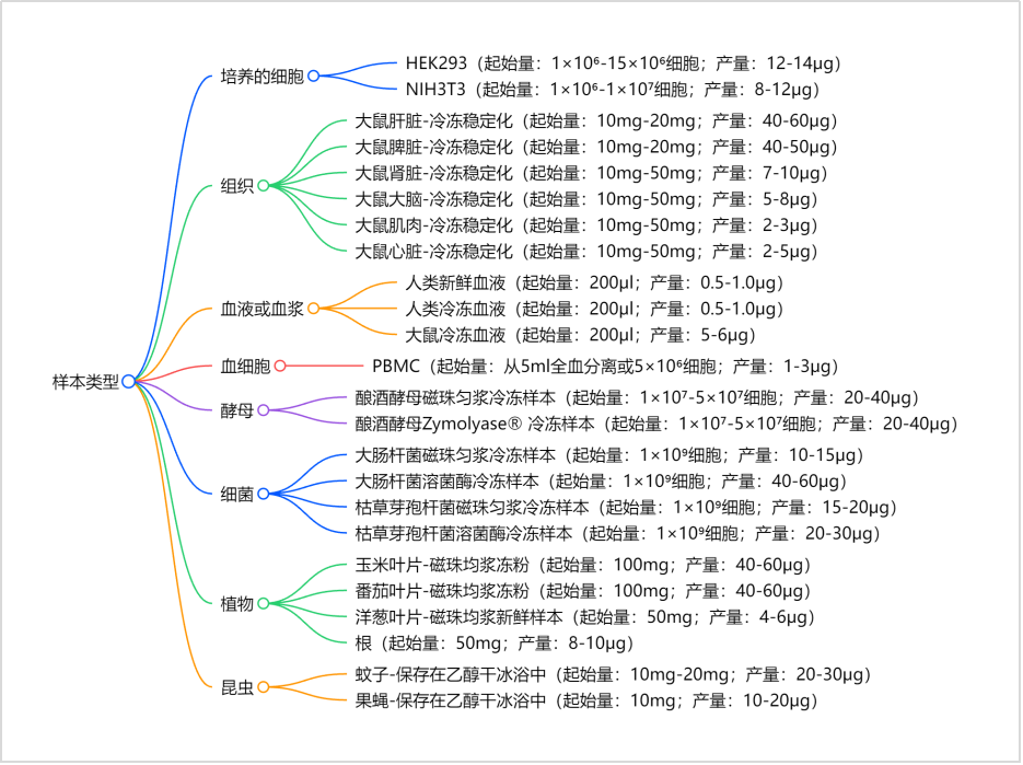 起始样本量:高达 10⁸个细胞或 50 mg 组织