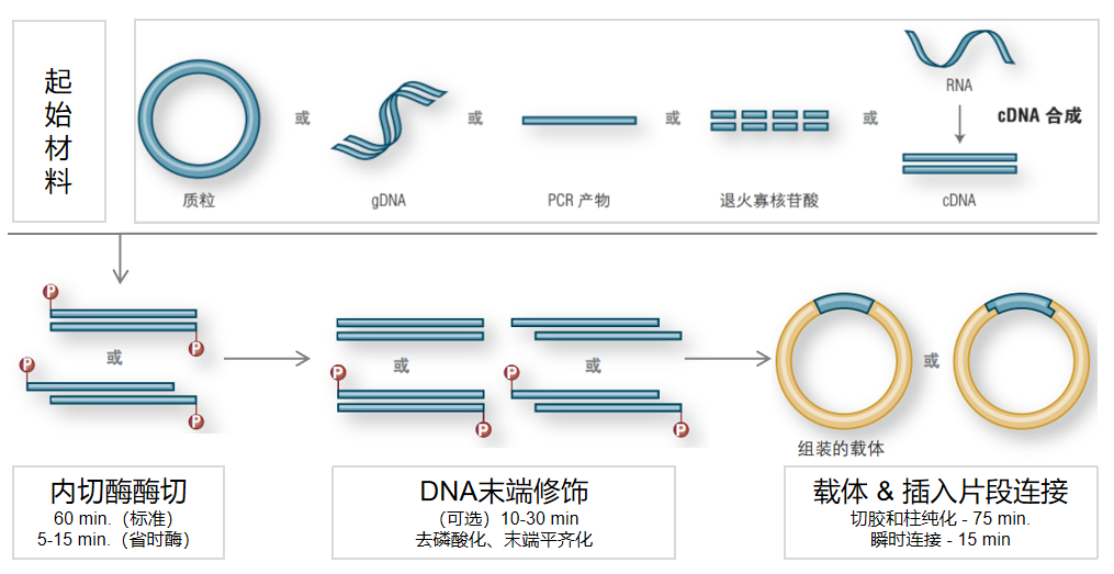 需要限制性内切酶和连接酶的克隆方法——平末端克隆和粘性末端克隆。