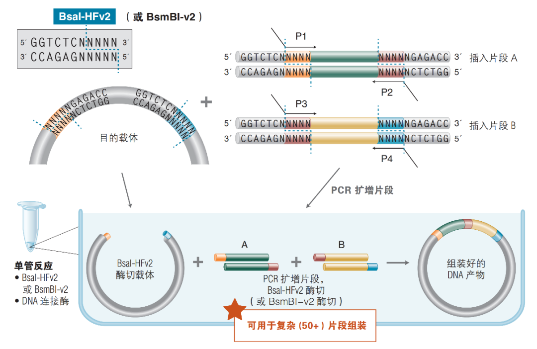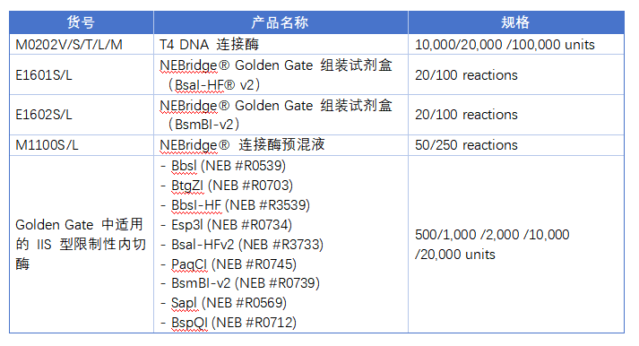 多片段效率:NEB 的 Golden Gate Assembly Mix 可实现 12 个片段同步组装,阳性率超 95%,大幅缩短合成生物学项目周期。