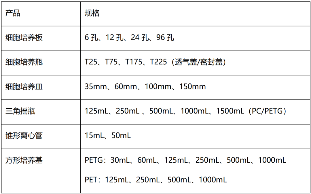 【试用产品】:细胞培养板、细胞培养瓶、细胞培养皿、三角摇瓶、细胞筛网、锥形离心管、方形培养基、血清移液管