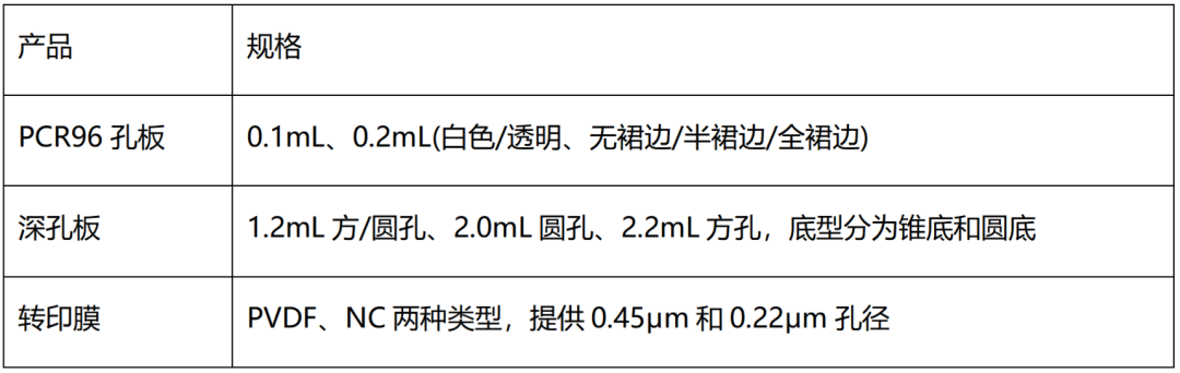 【试用产品】:PCR96/384孔板、酶标板、深孔板、转印膜